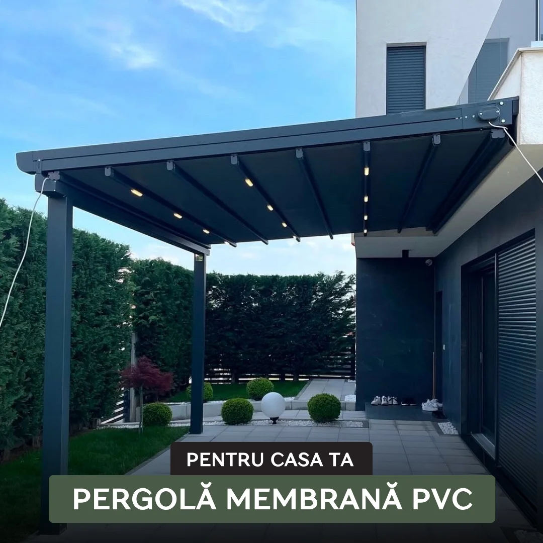 Transformă-ți terasa cu o pergolă din aluminiu, cu acoperiș PVC retractabil, fabricată în România. Ideală pentru restaurante, hoteluri, piscine sau casa ta, oferă durabilitate și eleganță, fără întârzieri, costuri suplimentare sau stresul importurilor. Sunt foarte rezistente la condiții meteo extreme, se pot închide cu sticlă termopan – culisantă sau ghilotină și vin cu garanție 5 ani.