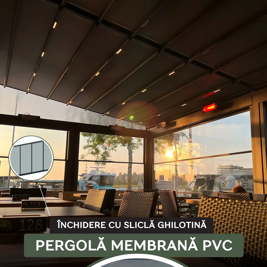 Aceste pergole combină funcționalitatea cu un design modern, îmbunătățind aspectul și siguranța spațiilor exterioare, fiind soluția perfectă pentru restaurante, hoteluri, piscine sau casa ta!