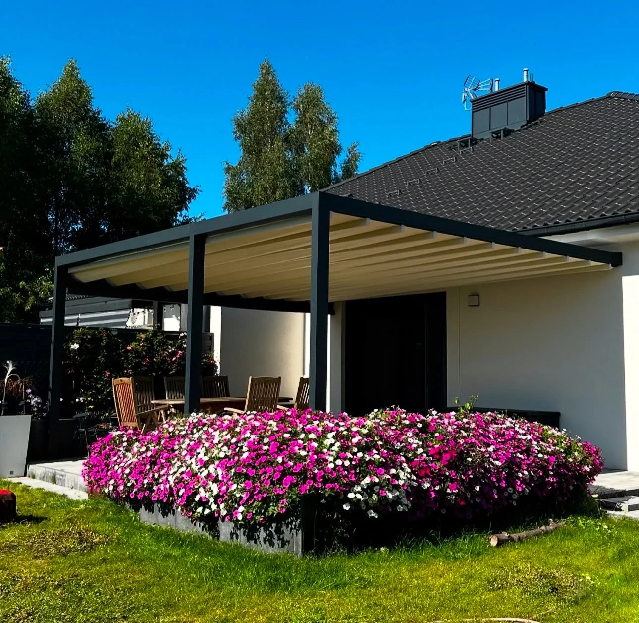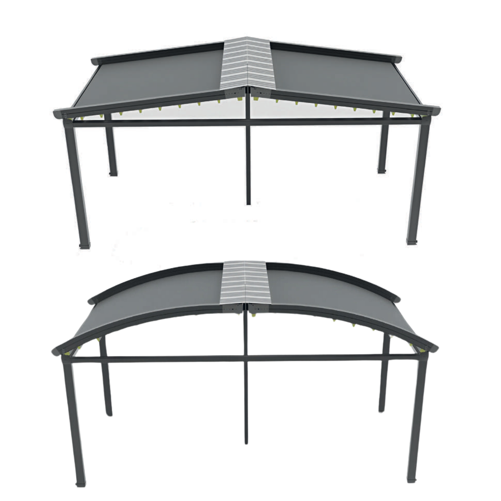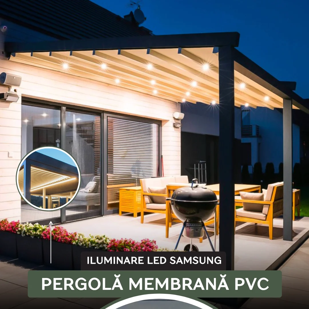 Pergolele din aluminiu, rezistente la rugină și coroziune, sunt ideale pentru utilizarea în aer liber, oferind durabilitate și întreținere minimă. Membrana PVC utilizată pentru acoperiș asigură protecție completă împotriva ploii, zăpezii și razelor UV, creând un spațiu confortabil în orice condiții meteorologice.